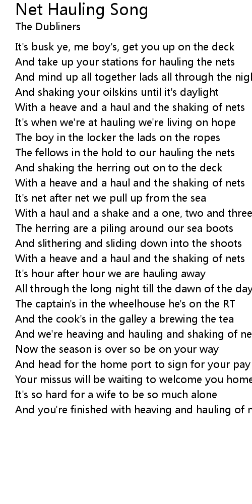 And we're heaving and hauling and shaking of nets |