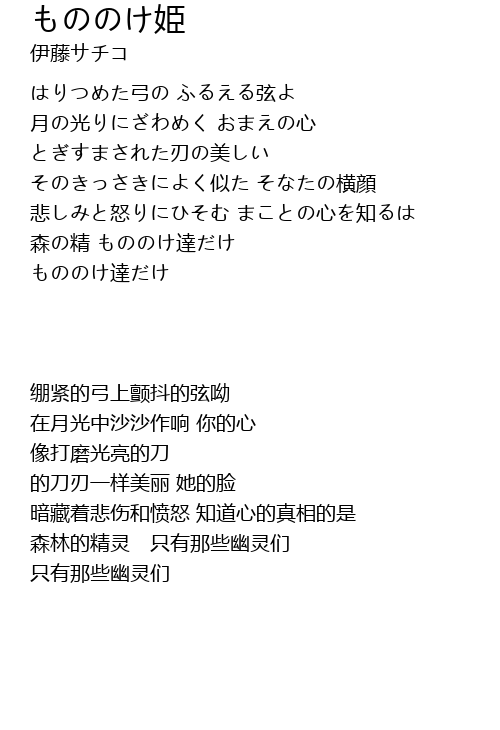 | Song | もののけ姫 |