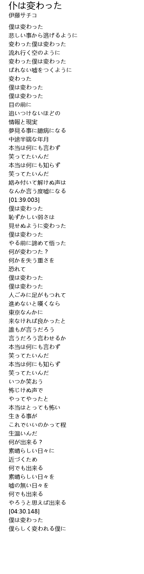 | [00:43.440] | 僕は変わった |