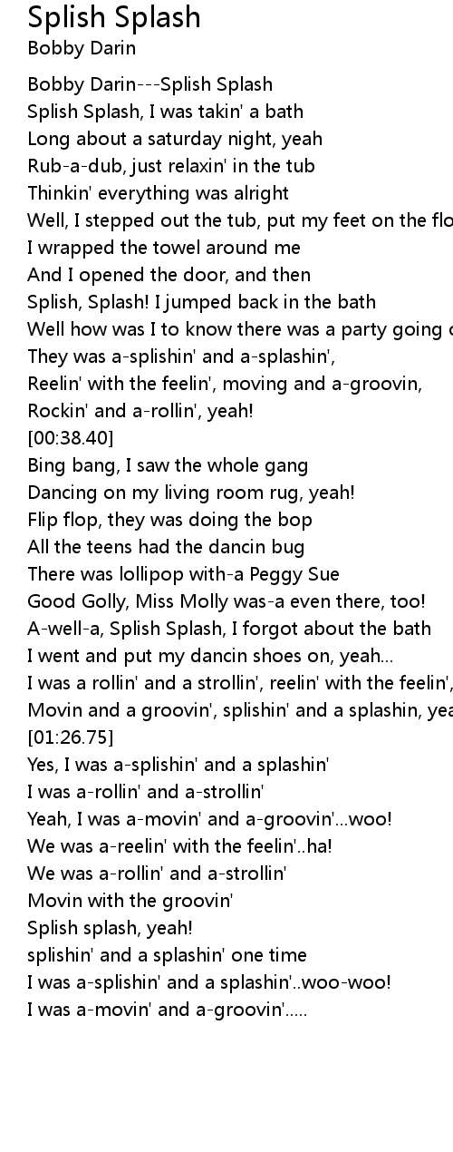 [01:07.18] A-well-a, Splish Splash, I forgot about the bath