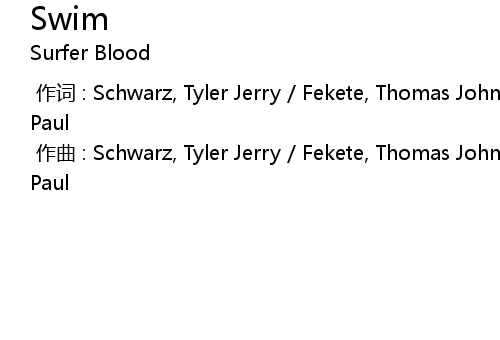 | [00:00.000] | zuò qǔ : Schwarz, Tyler Jerry Fekete, Thomas John Pitts, John Paul |