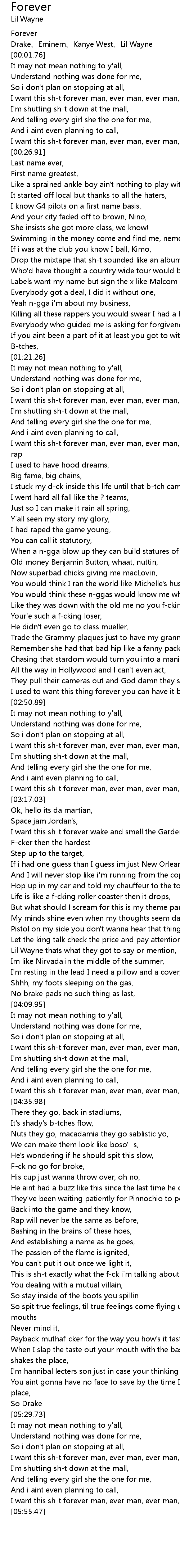 | [05:51.44] | I want this sh-t forever man, ever man, ever man, |