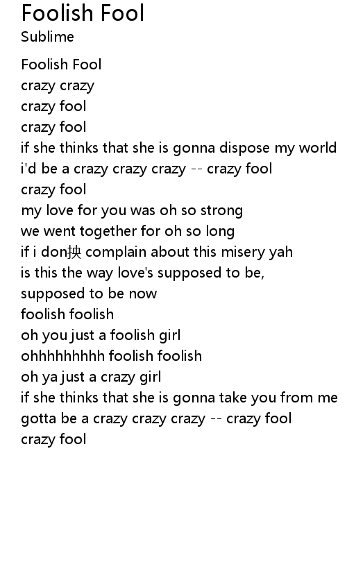 | gotta be a crazy crazy crazy -- crazy fool | |
