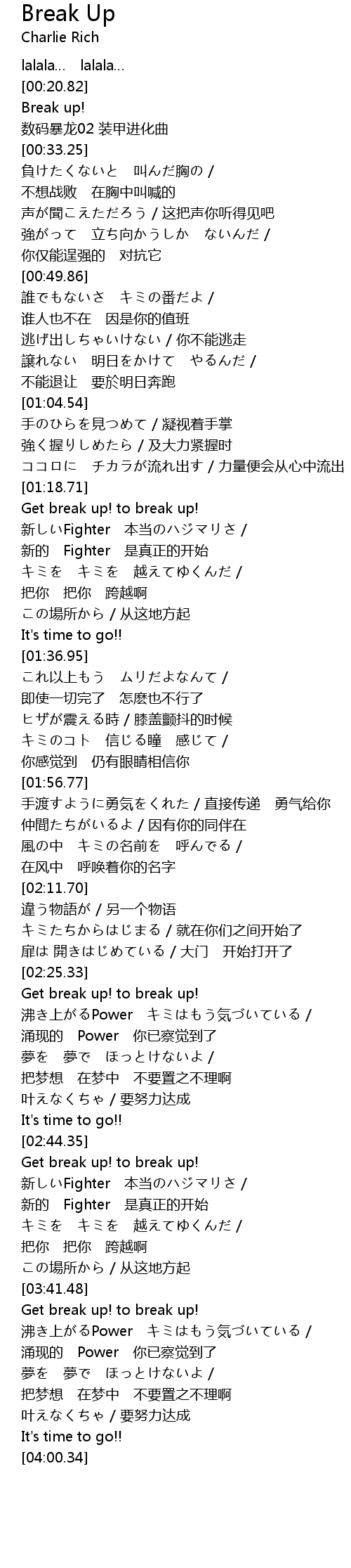 | [03:28.25] | 新しいFighter 本当のハジマリさ / 新的 Fighter 是真正的开始 |