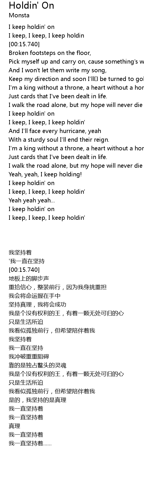 | [00:12.190] | I keep holdin' on |