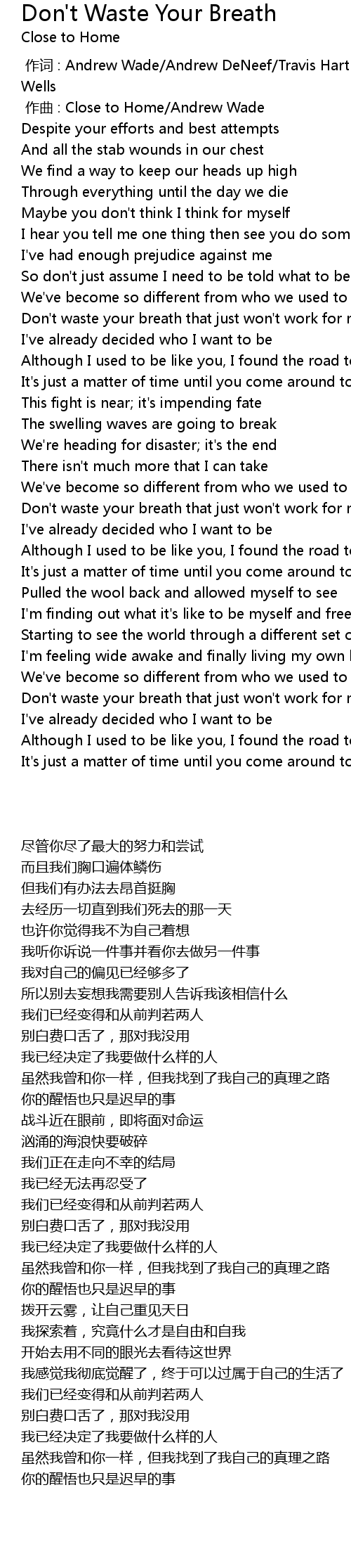 | [00:01.000] | 作曲 : Close to Home/Andrew Wade |