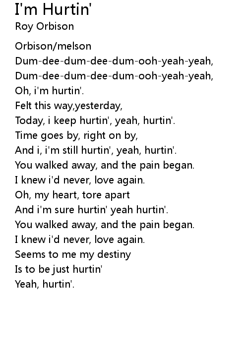 | And i, i'm still hurtin', yeah, hurtin'. | |