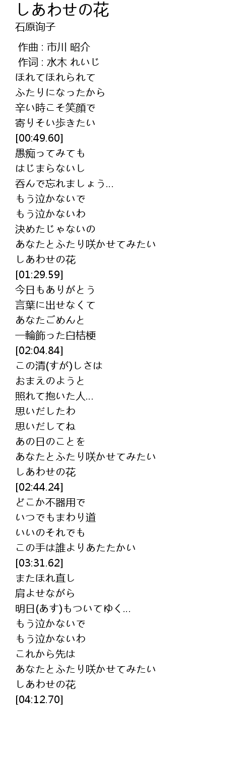 | [01:15.13] | あなたとふたり咲かせてみたい |