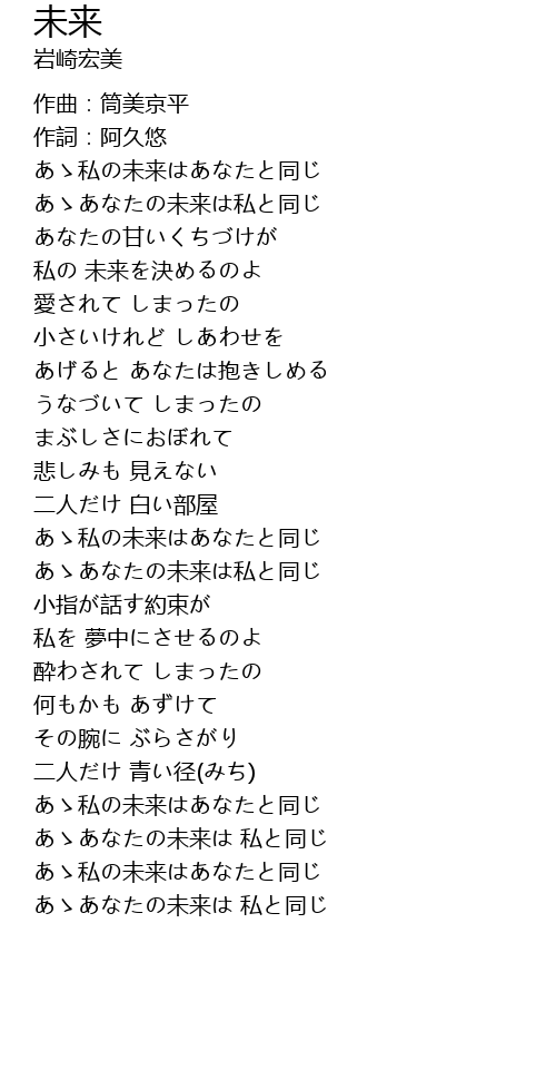| [02:32.94] | あゝあなたの未来は 私と同じ |