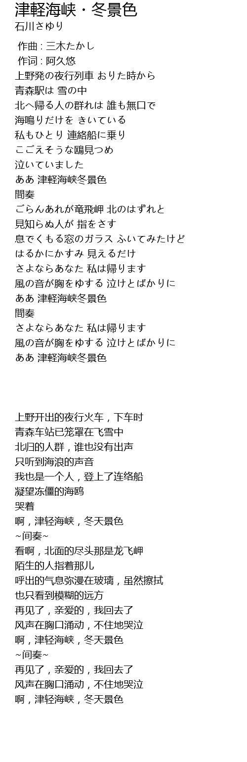 | [03:02.11] | ああ 津軽海峡冬景色 |