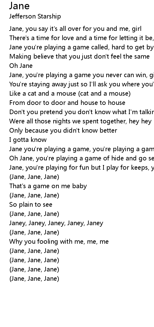 Jane, you're playing for fun but I play for keeps, yes I do |