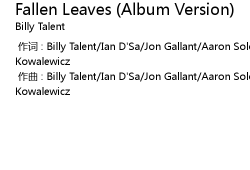 | [00:00.000] | zuò qǔ : Billy Talent Ian D' Sa Jon Gallant Aaron Solowoniuk Ben Kowalewicz |