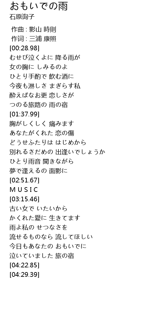 | [00:31.82] | むせび泣くよに 降る雨が |