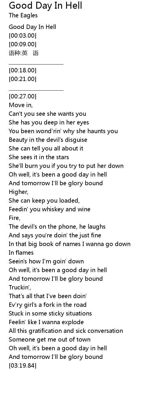 | [00:00.00] | Good Day In Hell |