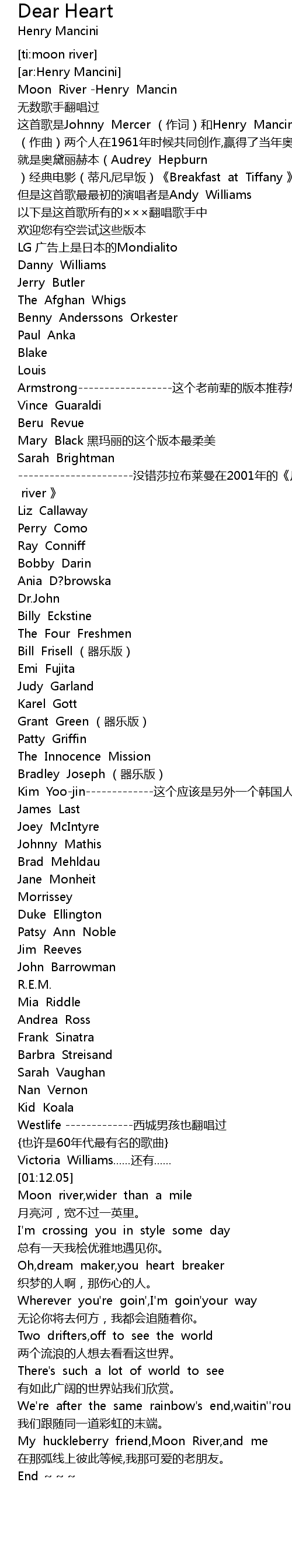| [02:17.63] | My huckleberry friend,Moon River,and me |