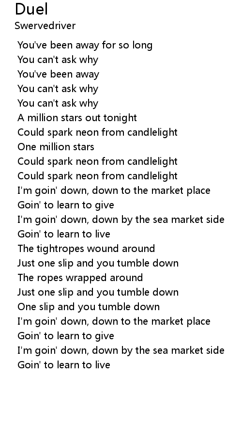 I'm goin' down, down by the sea market side |