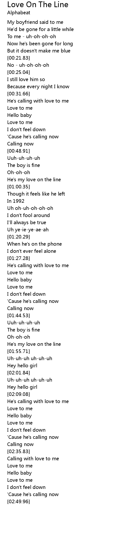 [00:57.41] He's my love on the line