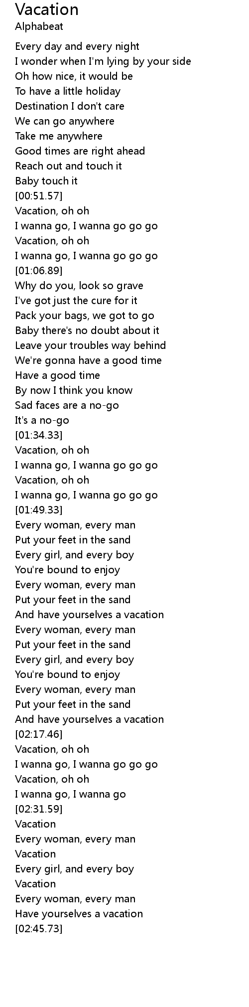 Vacation, oh oh |