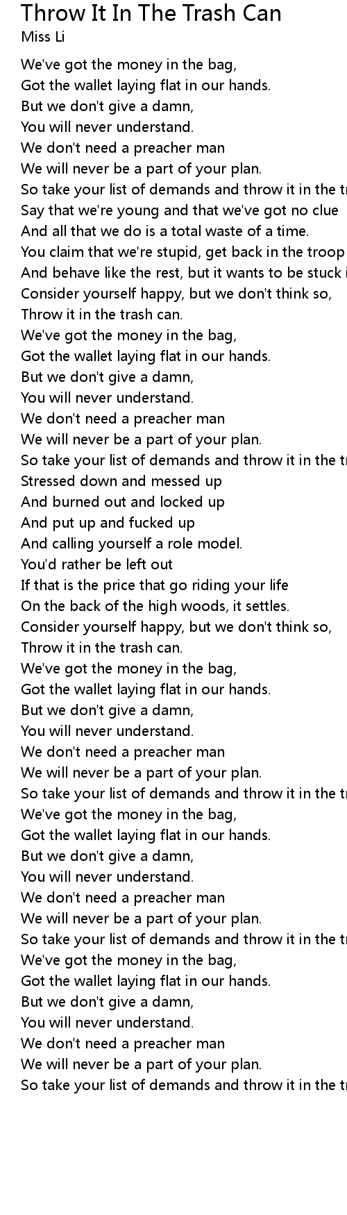 So take your list of demands and throw it in the trash can. |