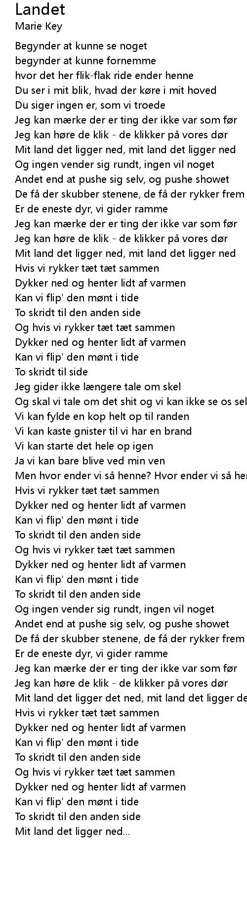 | [00:38.66] | Mit land det ligger ned, mit land det ligger ned |