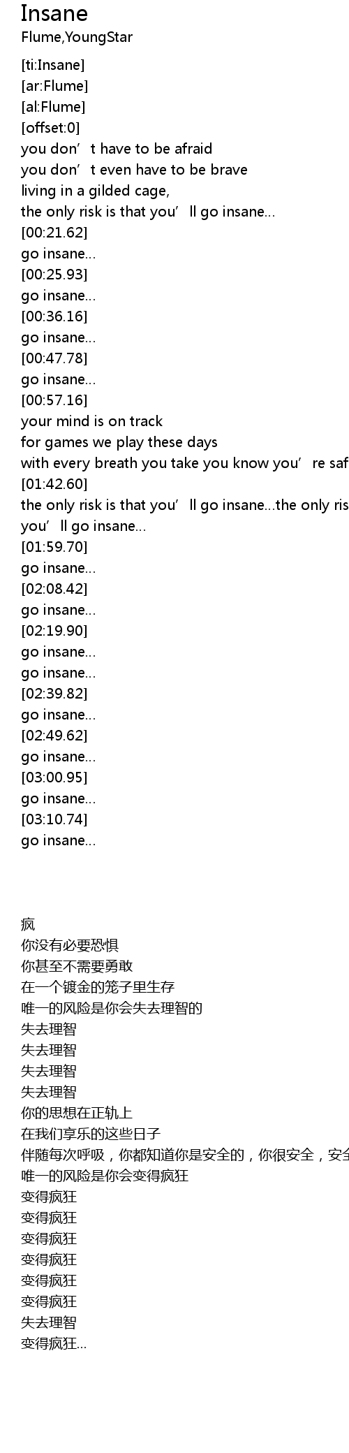| [01:44.04] | the only risk is that you' ll go insane the only risk is that you' ll go insane |