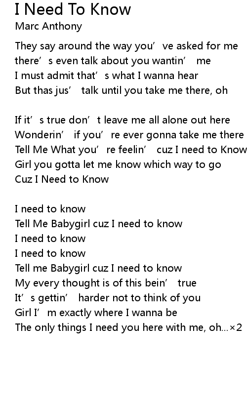 | I need to know | |