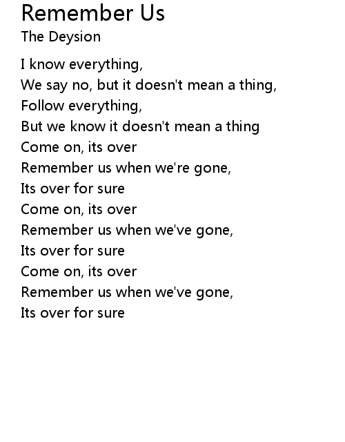 | Remember us when we're gone, | |