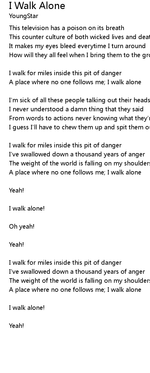 A place where no one follows me; I walk alone |