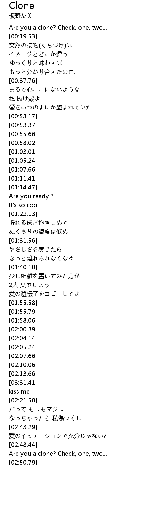 | [02:48.76] | Are you a clone? Check, one, two… |