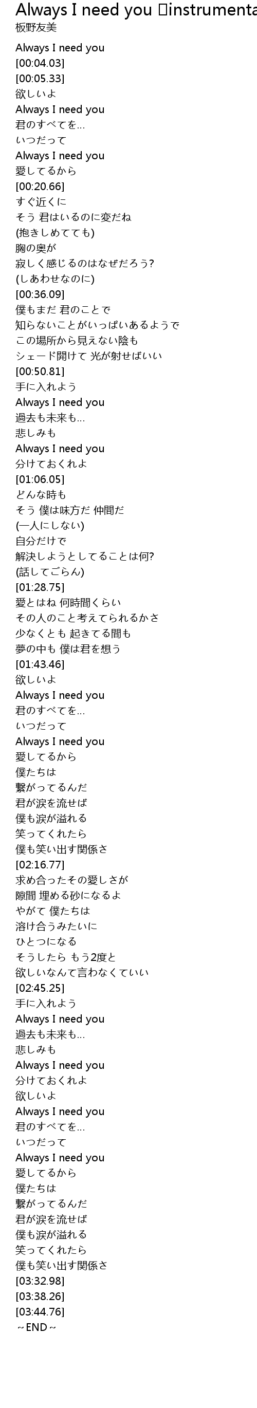 | [03:01.98] | Always I need you |