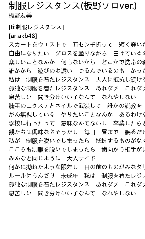 | [03:31.683] | ルールにうんざり 未成年 私は 制服を着たレジスタンス 大人に抵抗し続ける |