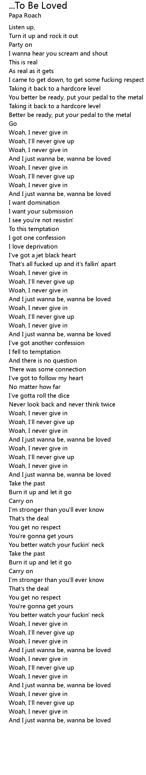 Woah, I never give in |