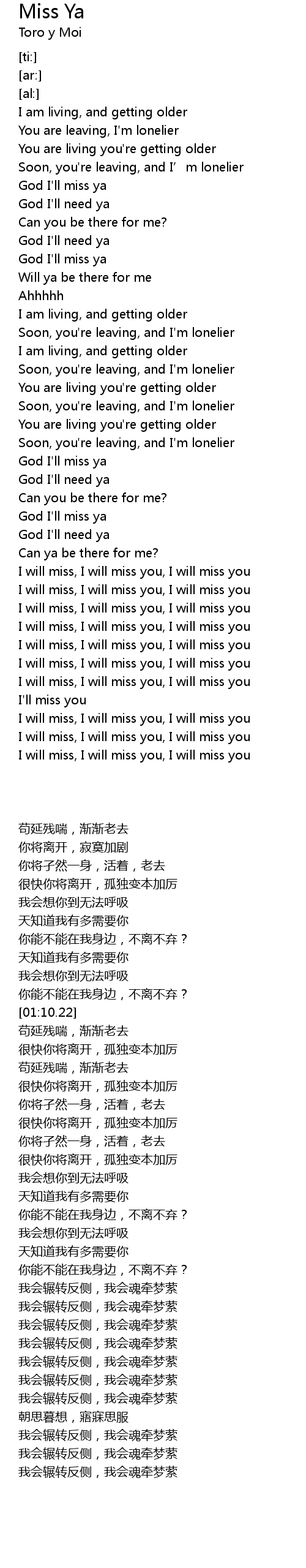 | [02:50.91] | I will miss, I will miss you, I will miss you |