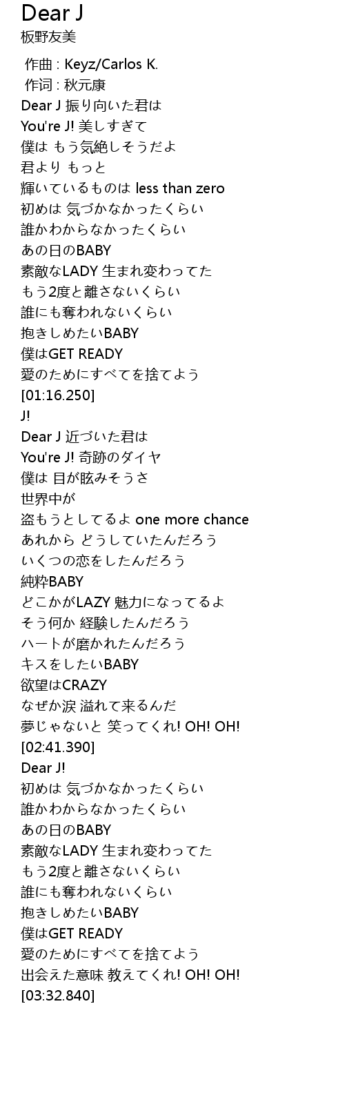 | [01:22.570] | Dear J 近づいた君は |