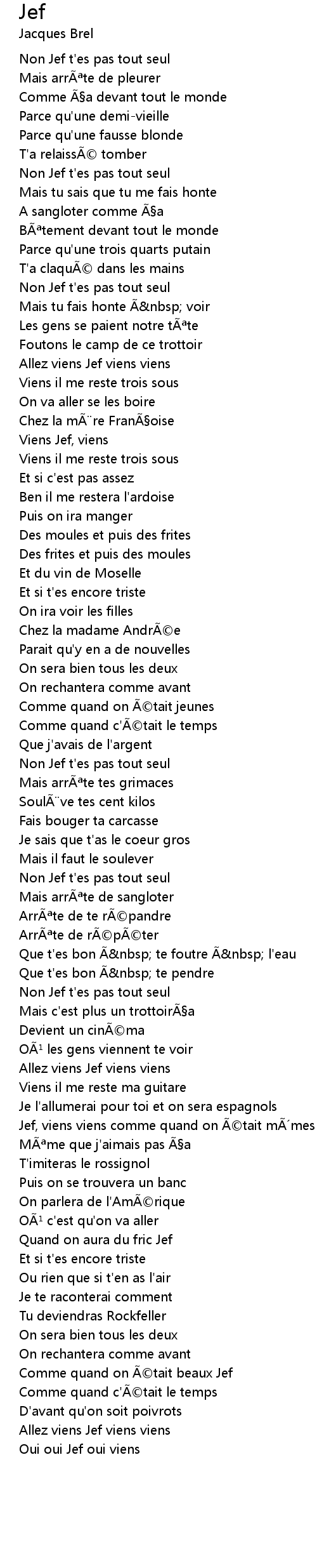 | Jef, viens viens comme quand on tait m mes | |