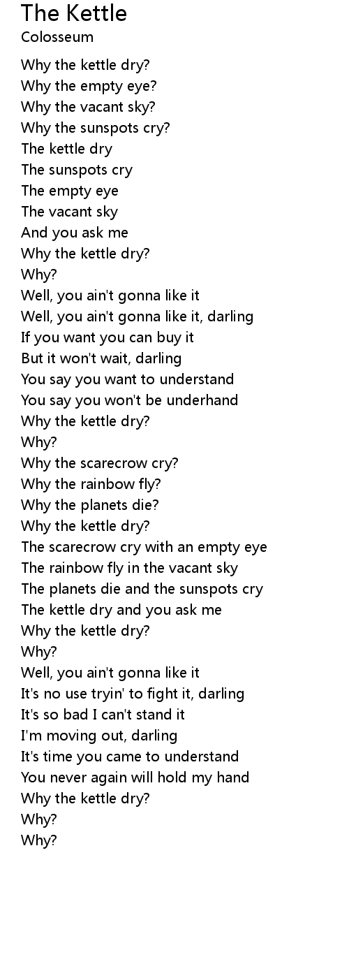 The kettle dry and you ask me |