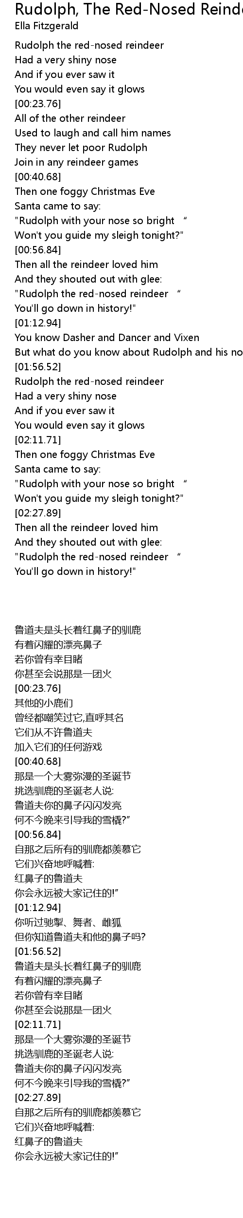 | [01:05.01] | "Rudolph the red-nosed reindeer “ |
