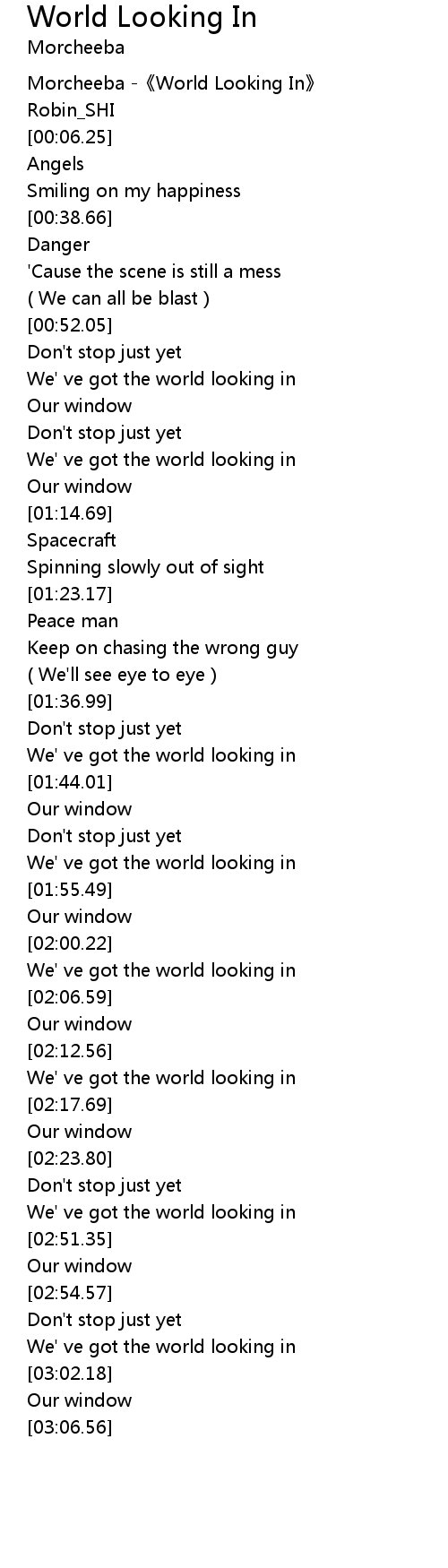 | [00:02.25] | Morcheeba -《World Looking In》 |