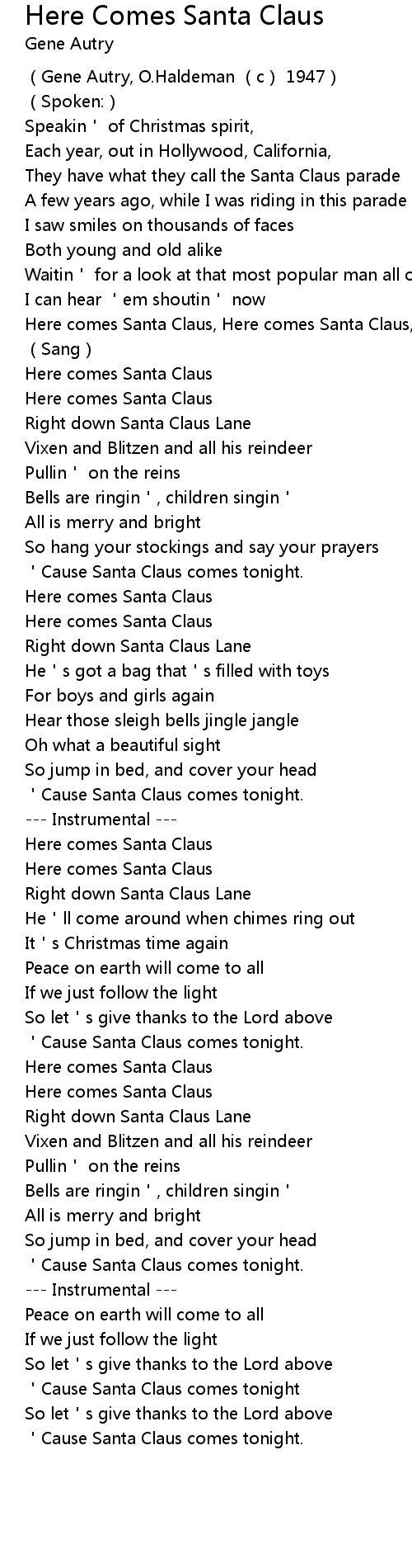 | Here comes Santa Claus, Here comes Santa Claus, Here comes Santa Claus | |