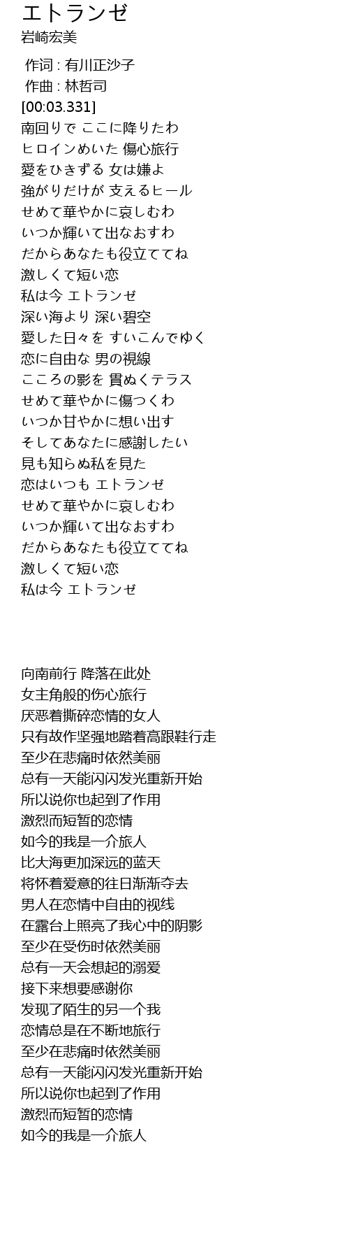 | [03:23.089] | 私は今 エトランゼ |