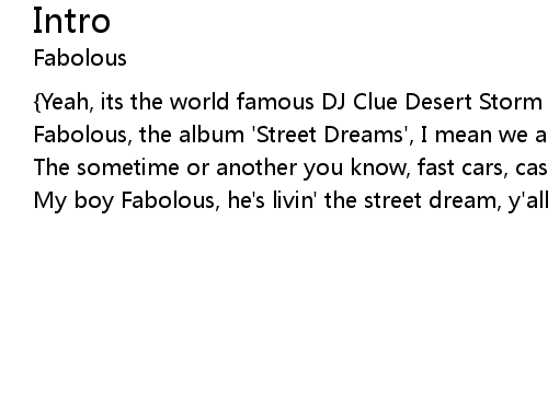 | Fabolous, the album 'Street Dreams', I mean we all street dream | |