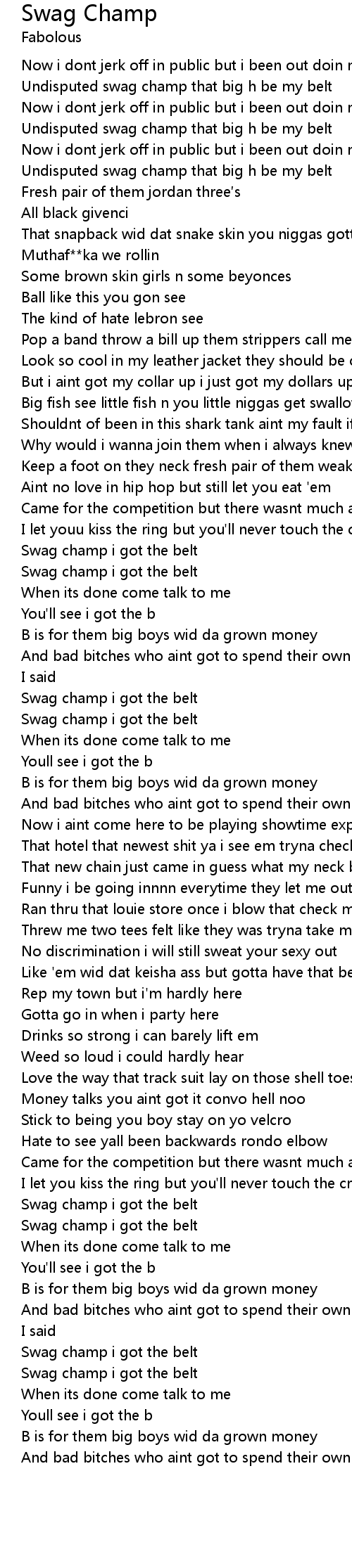 | [00:30.82] | Undisputed swag champ that big h be my belt |