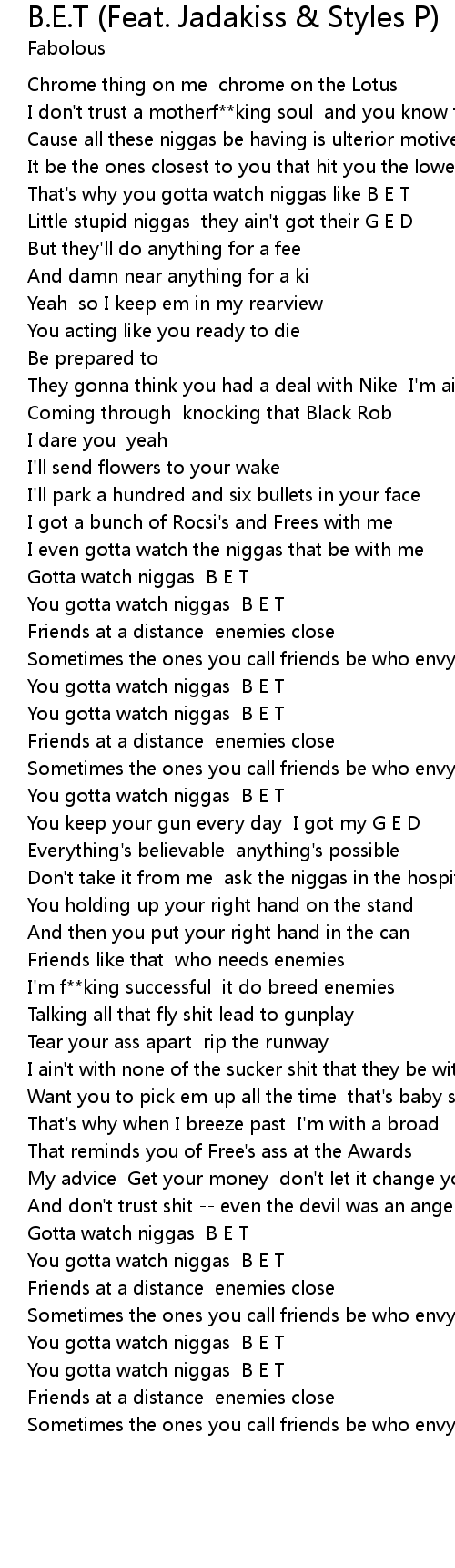 Gotta watch niggas B E T |