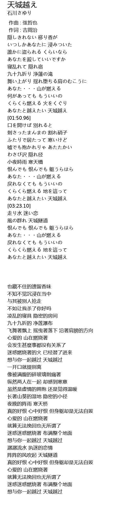 | [01:29.34] | くらくら燃える 火をくぐり |