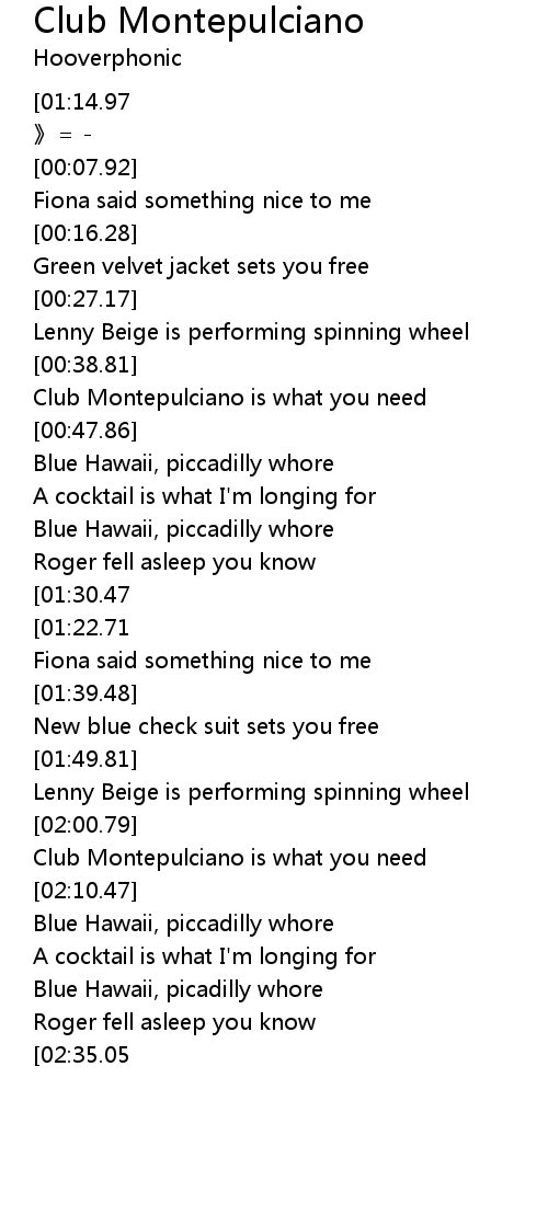 | [02:37.58][01:14.97][00:00.00] | Hooverphonic Club Montepulciano |