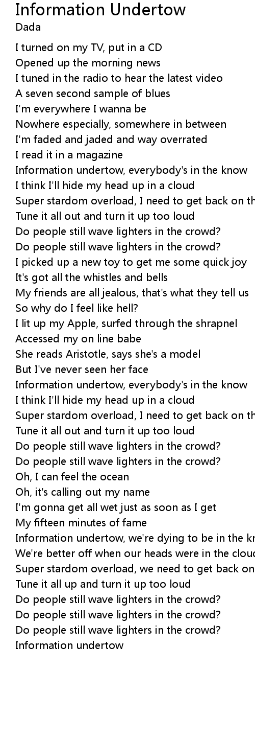 Information undertow, we're dying to be in the know |