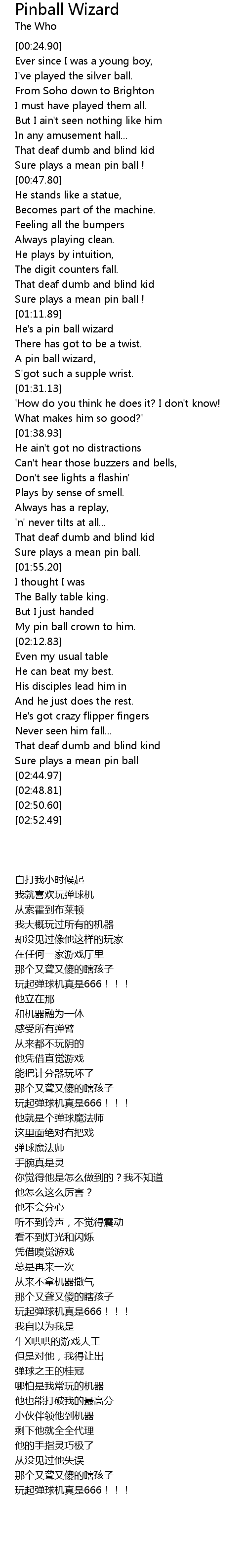 | [01:18.86] | He's a pin ball wizard |