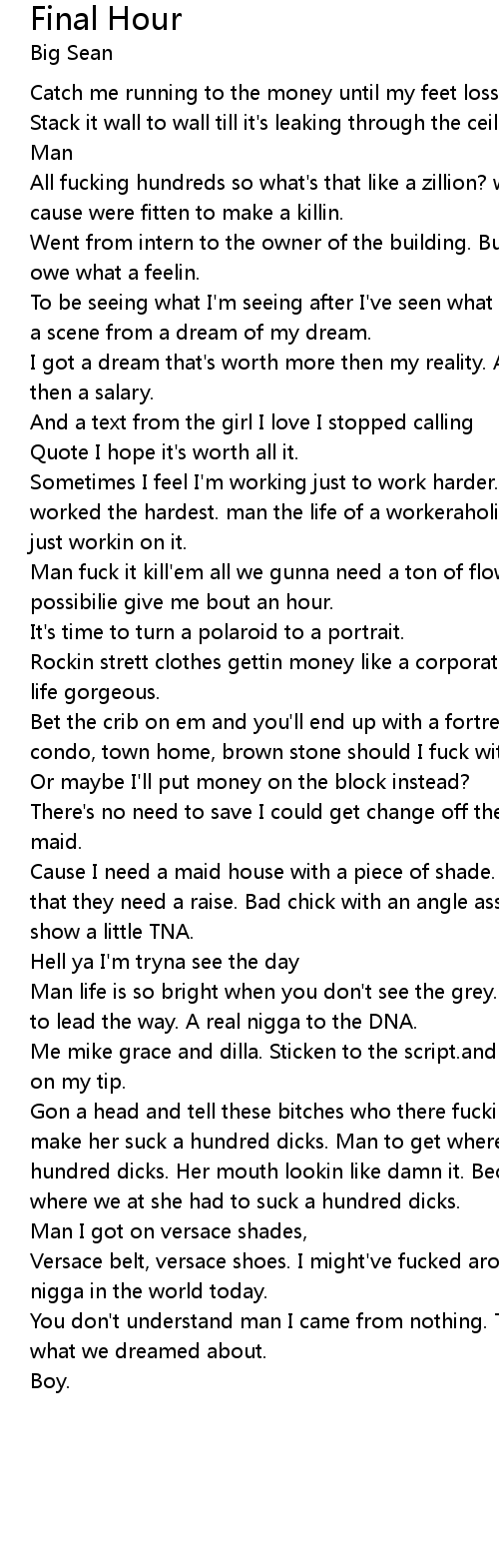 Gon a head and tell these bitches who there fuckin. Man to get where I'm at I'll make her suck a hundred dicks. Man to get where I'm at I'll make her suck a hundred dicks. Her mouth lookin like damn it. Because of me and canon and to get where we at she had to suck a hundred dicks. |
