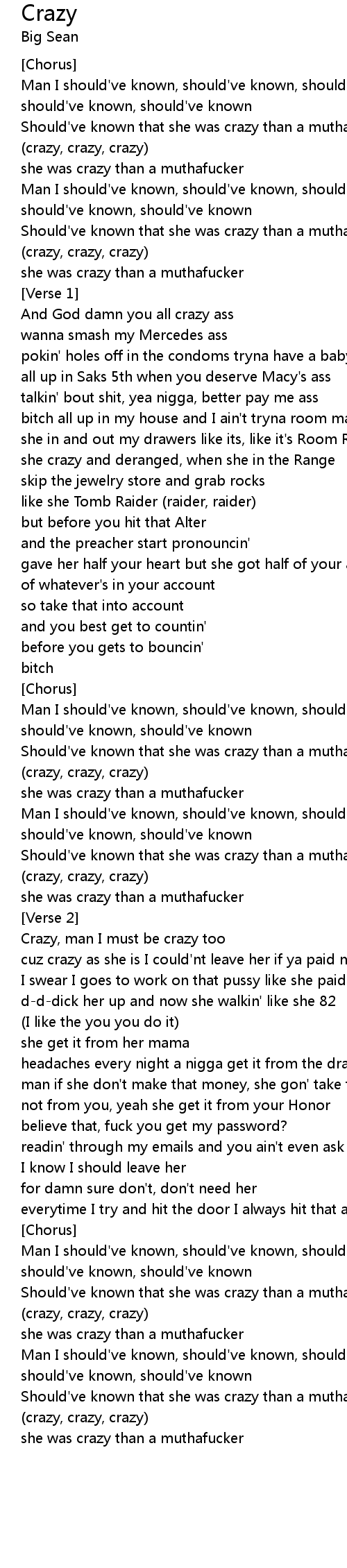 Should've known that she was crazy than a muthafucker |