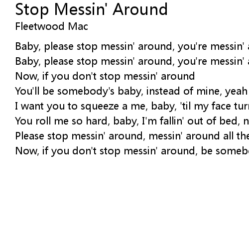 | Baby, please stop messin' around, you're messin' around all the time | |